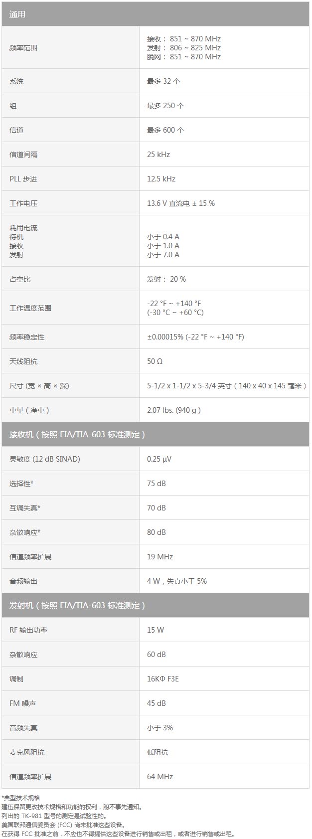 TK-980 800MHz FM 車載式對講機