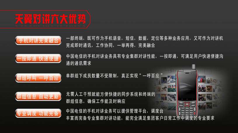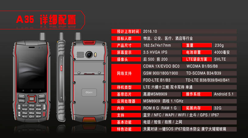產(chǎn)品特點(diǎn):天翼對(duì)講(CTChat)、一鍵SOS、智能三防、防水防塵